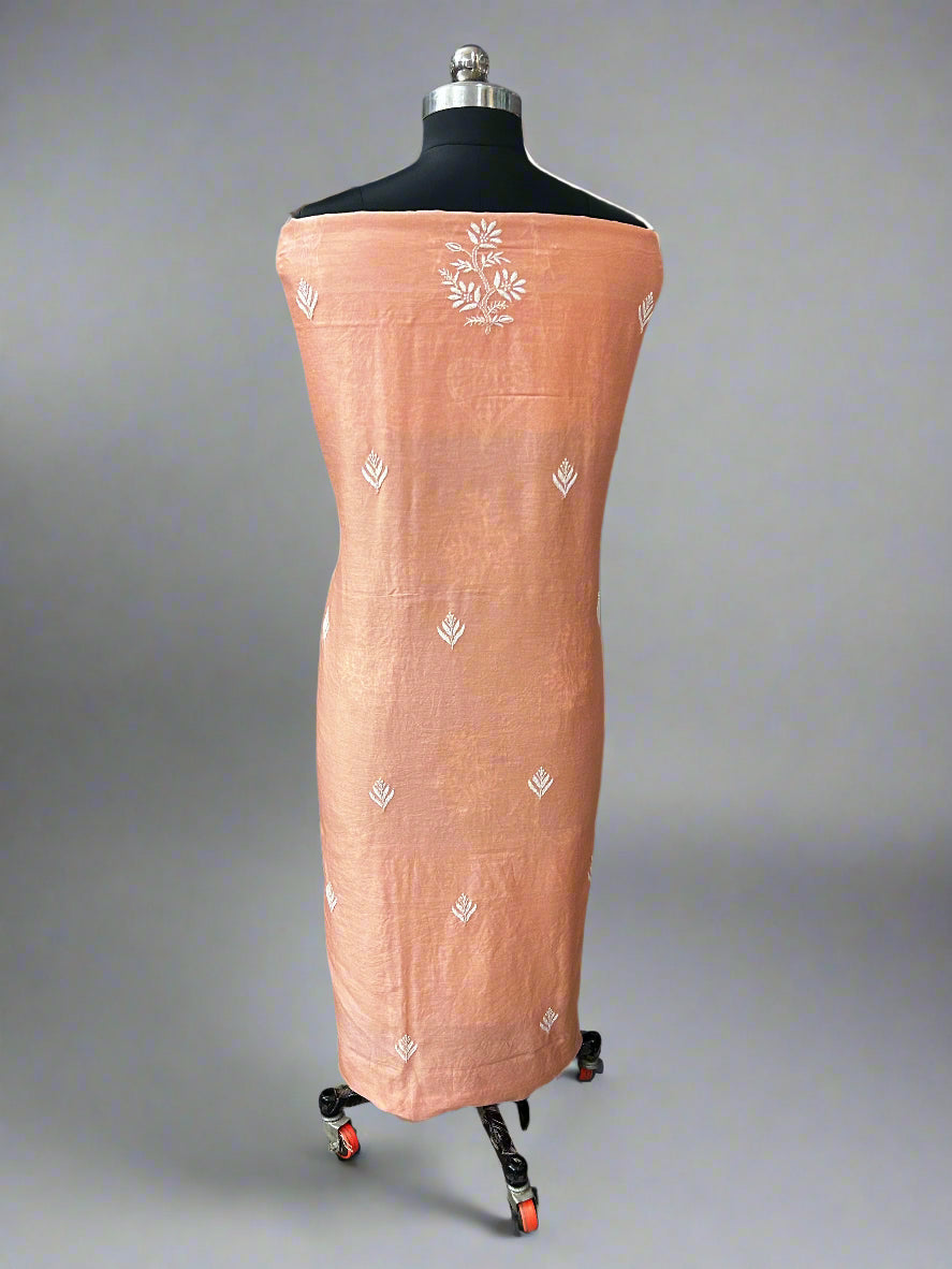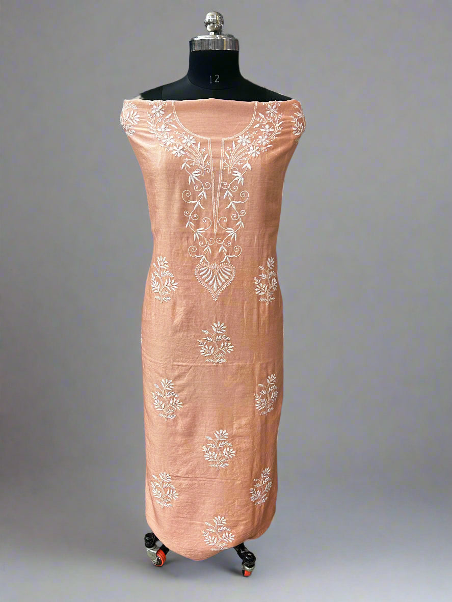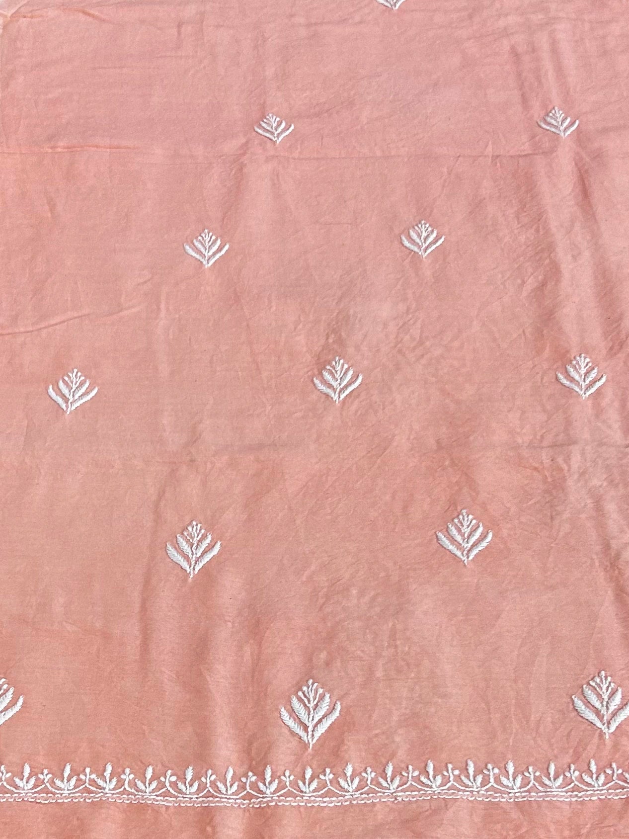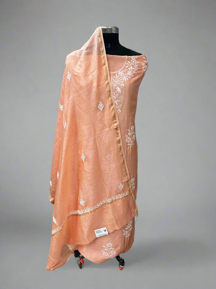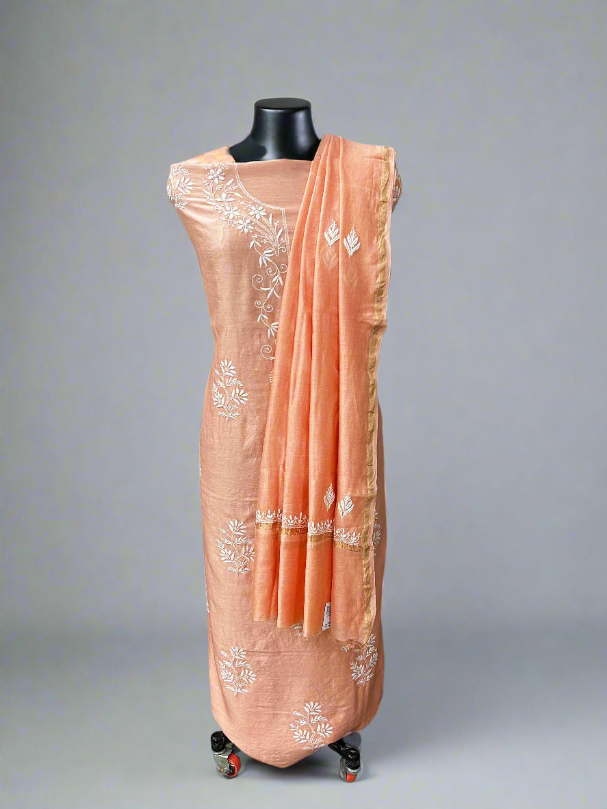 Lucknowi Chikankari Unstitched Peach Chanderi Kurta-Dupatta Fabric-PG400060
