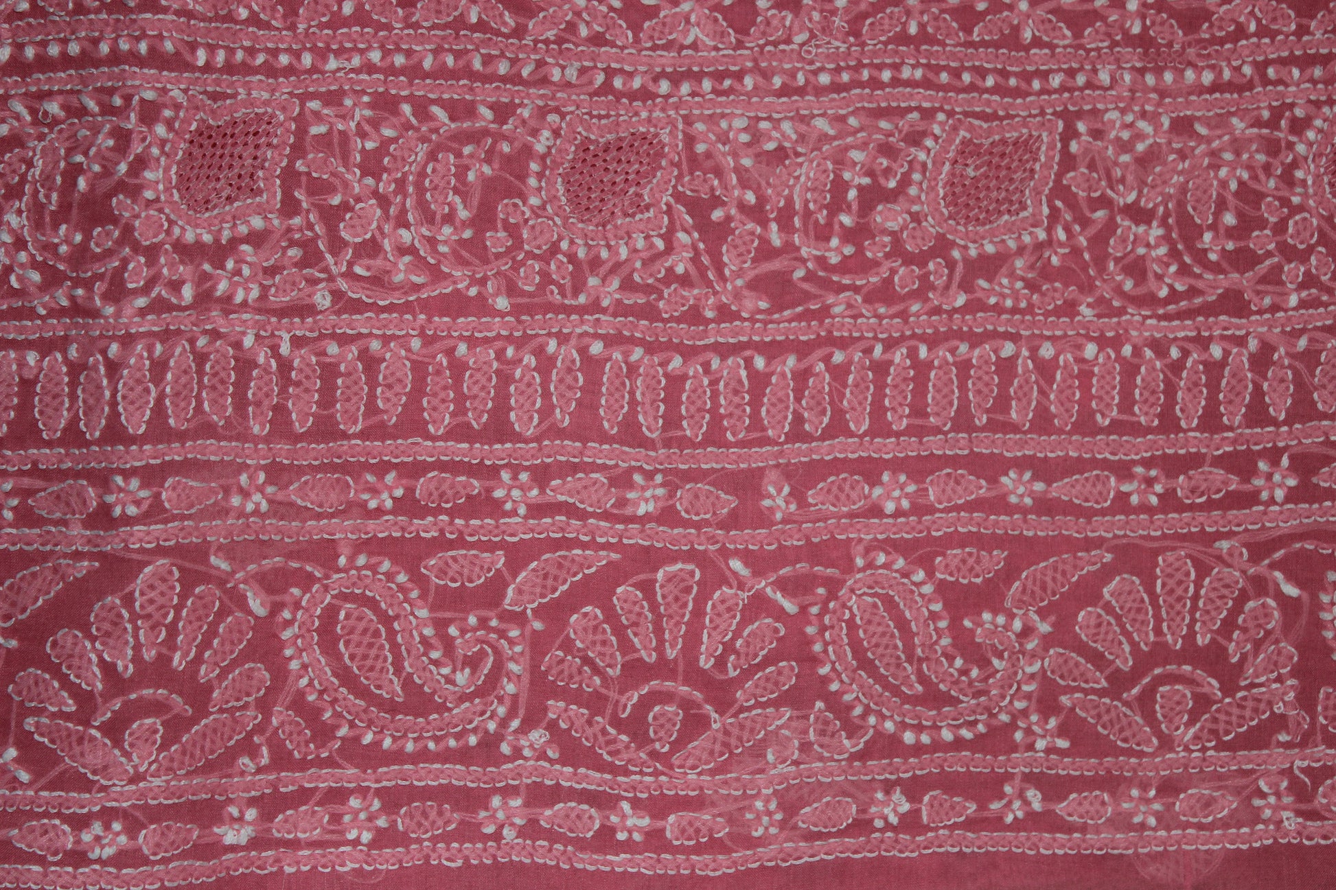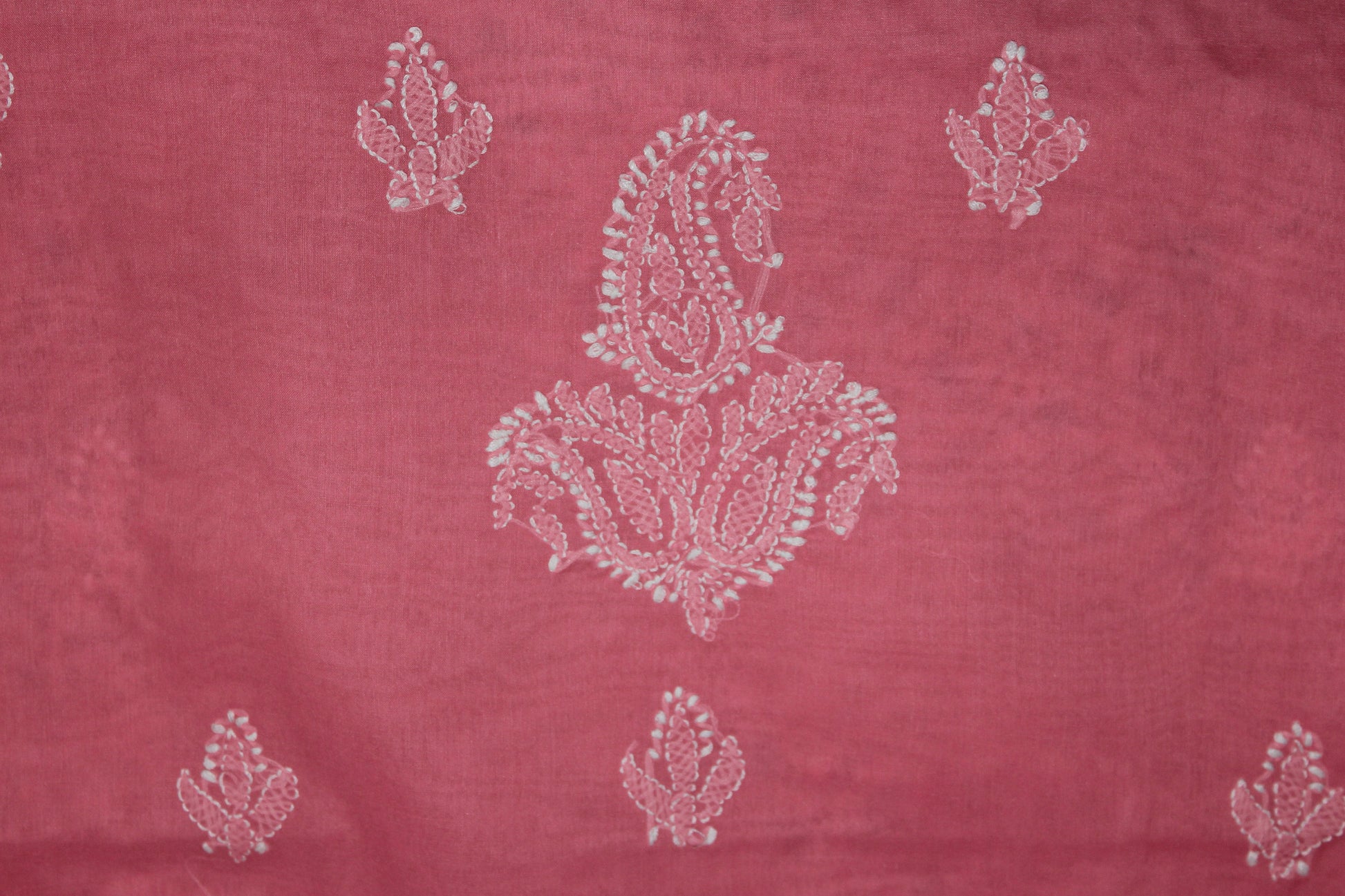 Crafted with the finest cotton fabric, the Lucknowi Chikankari Unstitched Pink Cotton Kurta Bottom Fabric offers unmatched comfort and breathability. Perfect for hot summers, this kurta's light and airy fabric will keep you cool and stylish all day long. Embrace the traditional elegance of Lucknowi Chikankari embroidery with this unstitched piece.