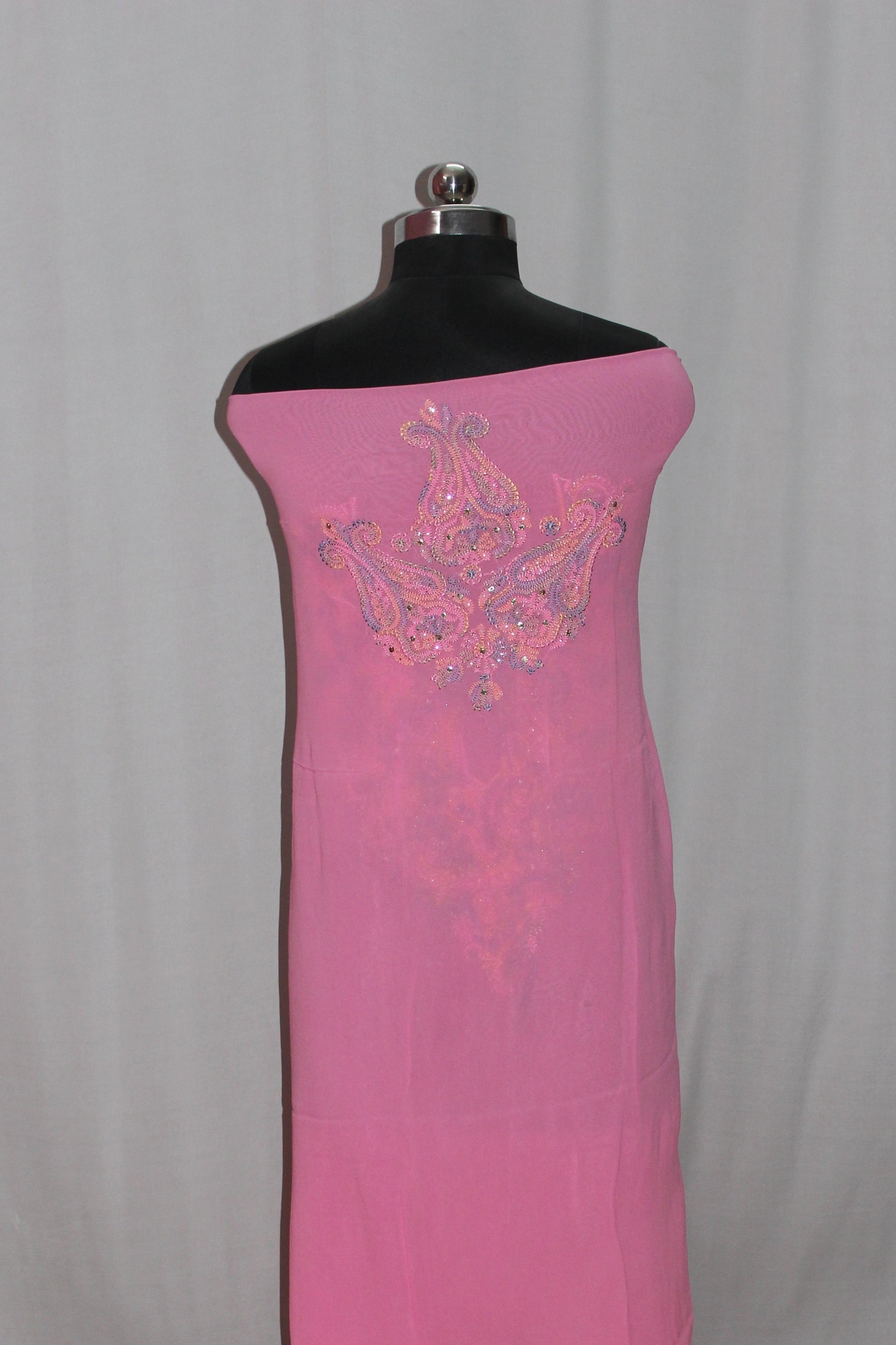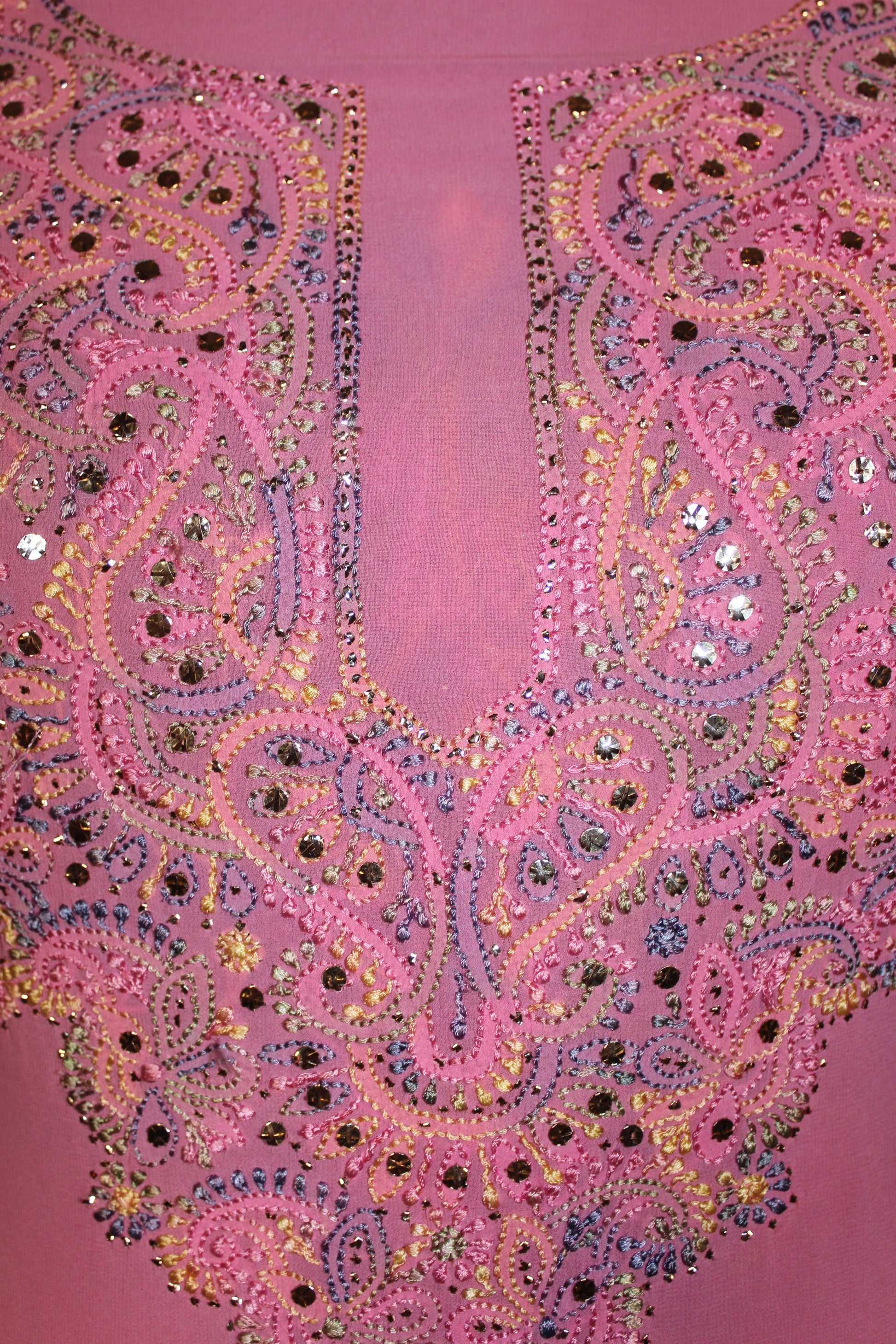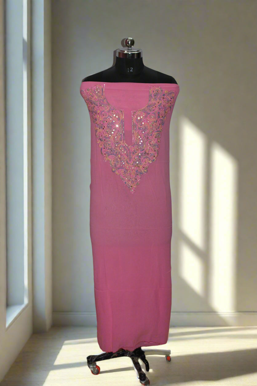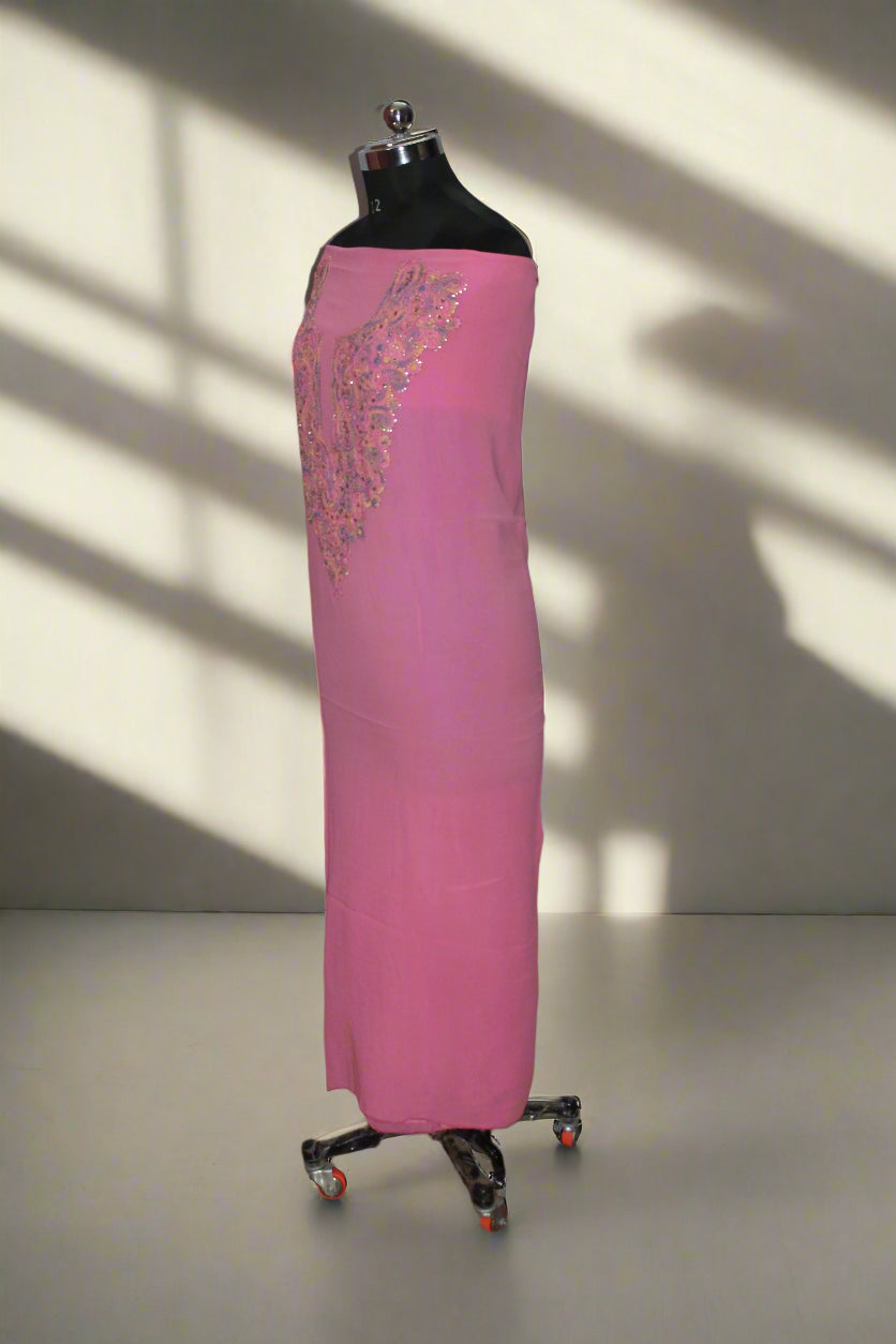 Lucknowi Chikankari Unstitched Pink Viscose Kurta Fabric-U10003
