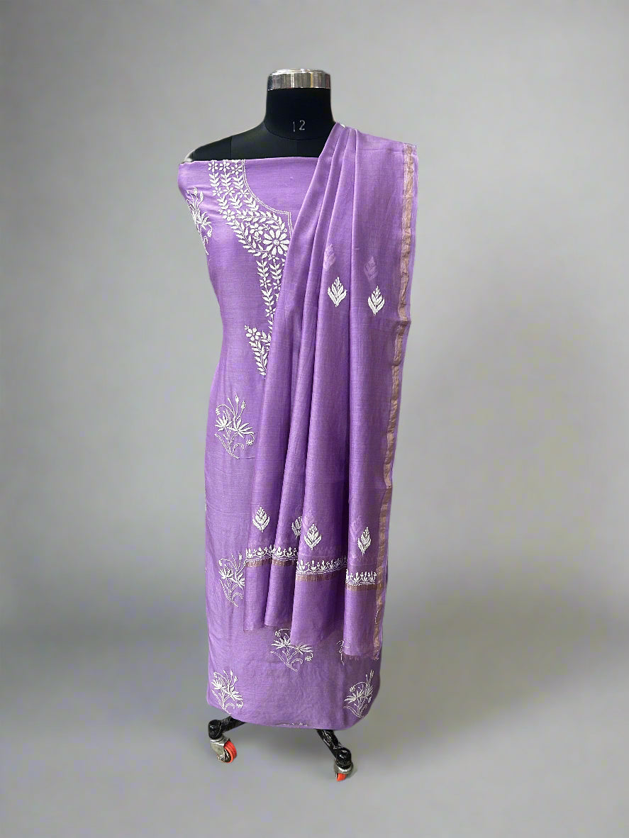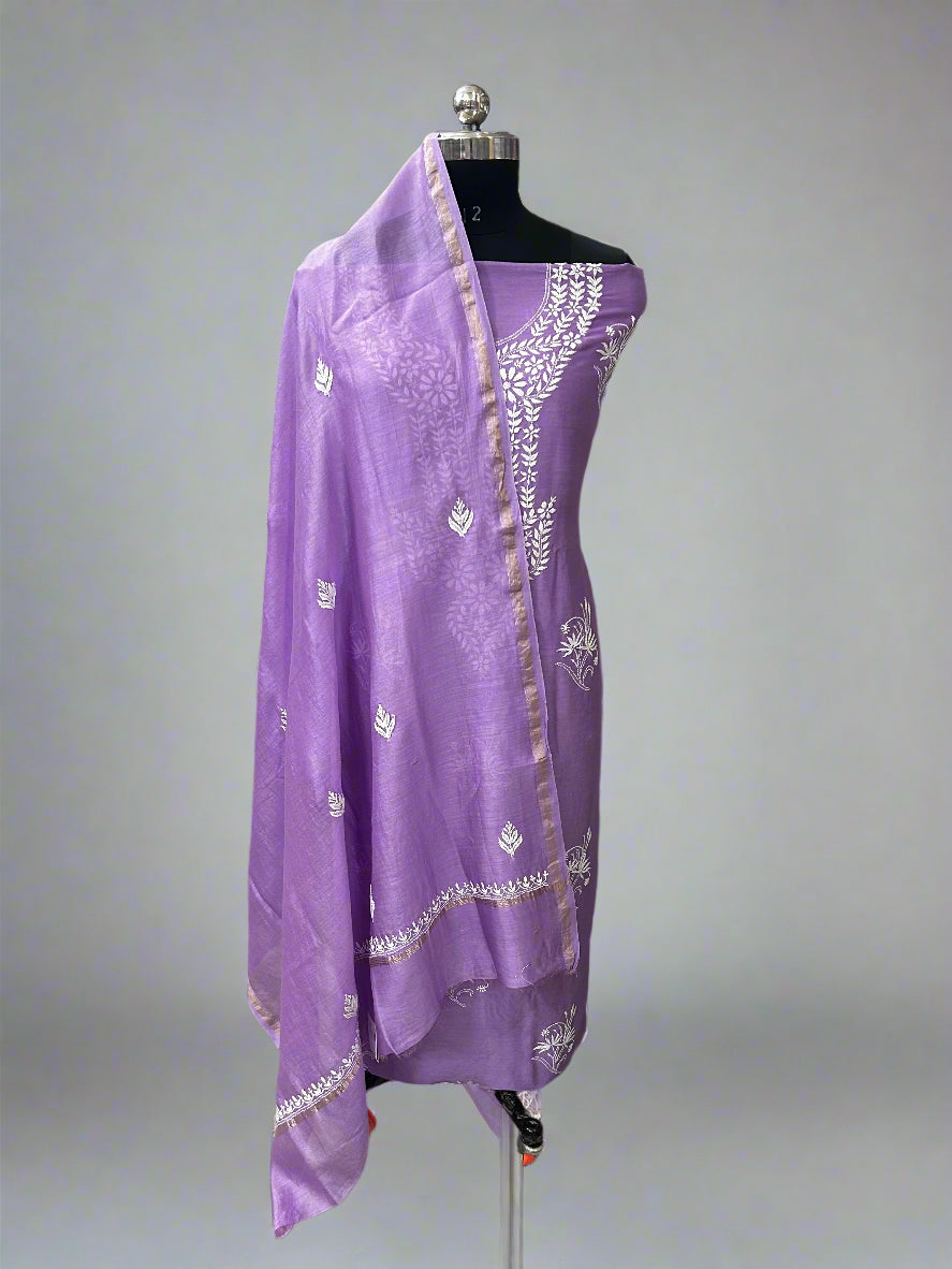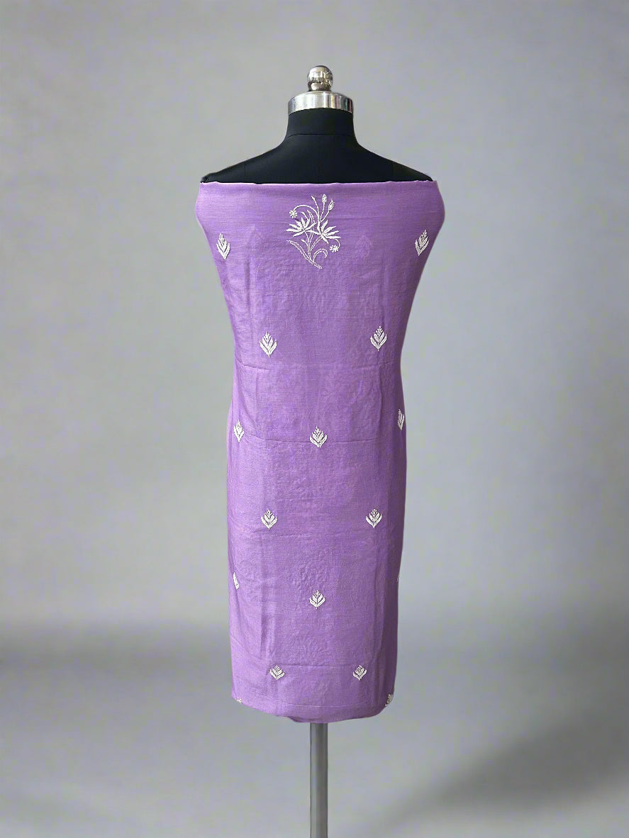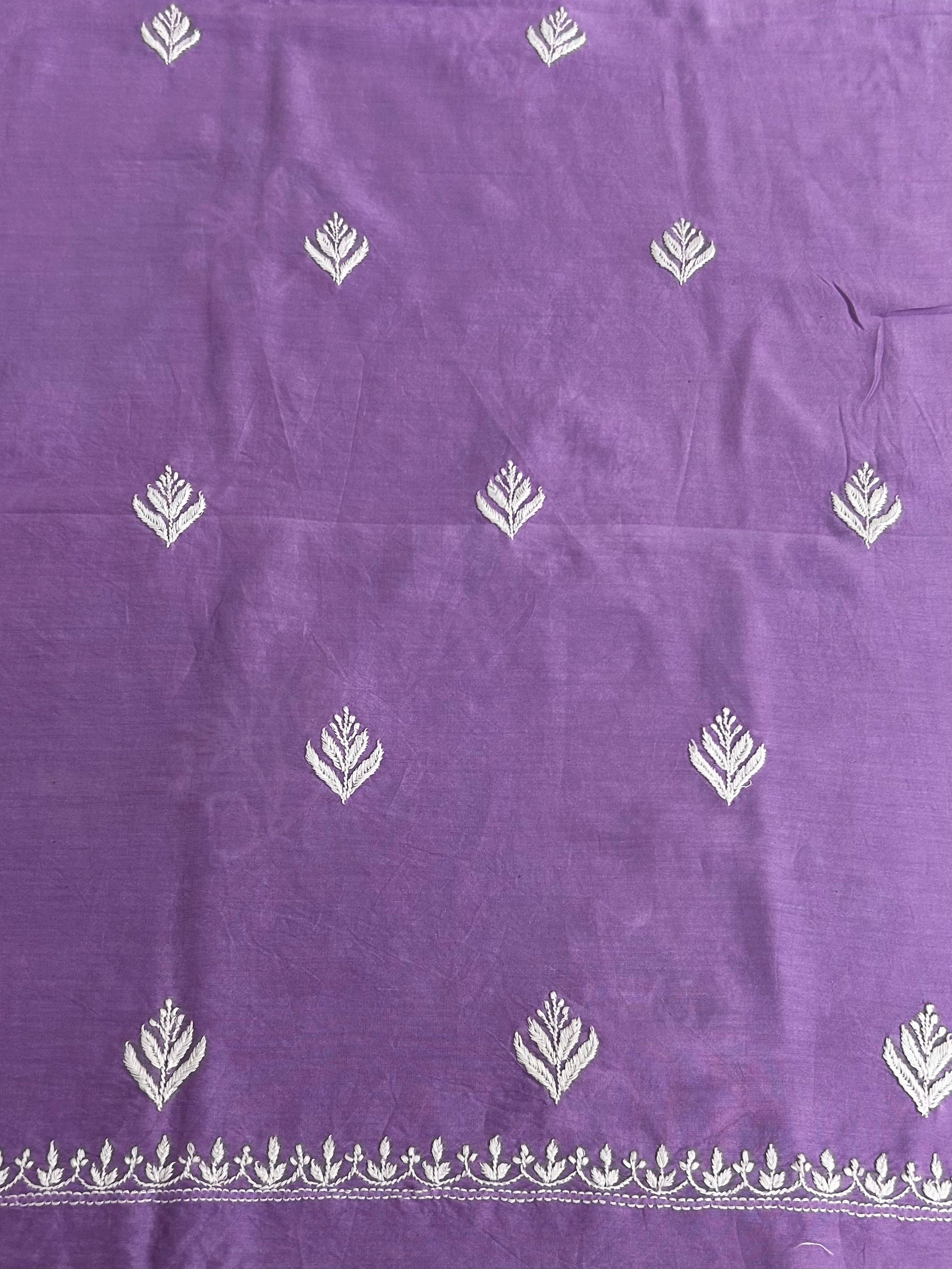 Lucknowi Chikankari Unstitched Purple Chanderi Kurta-Dupatta Fabric-PG400057