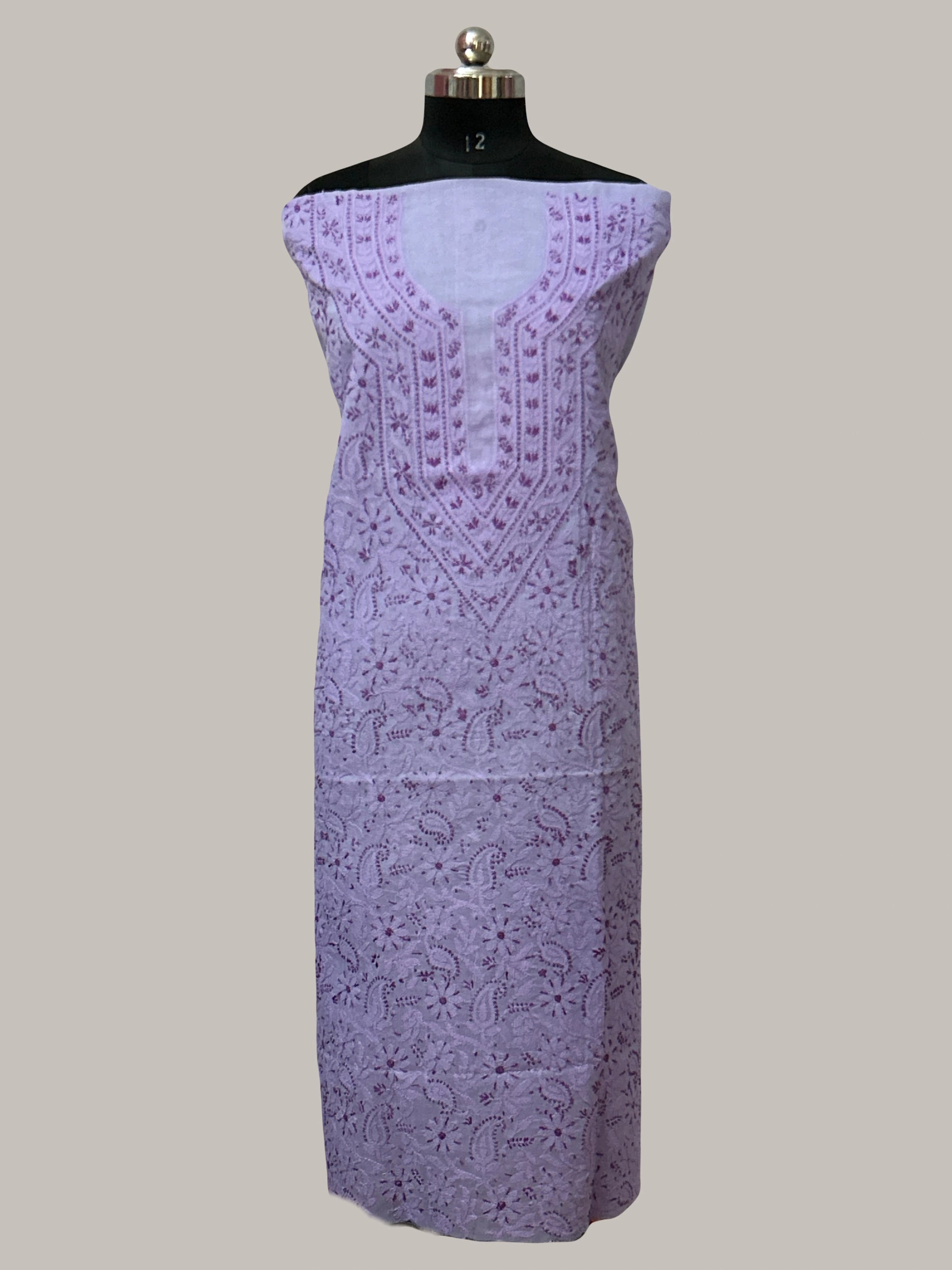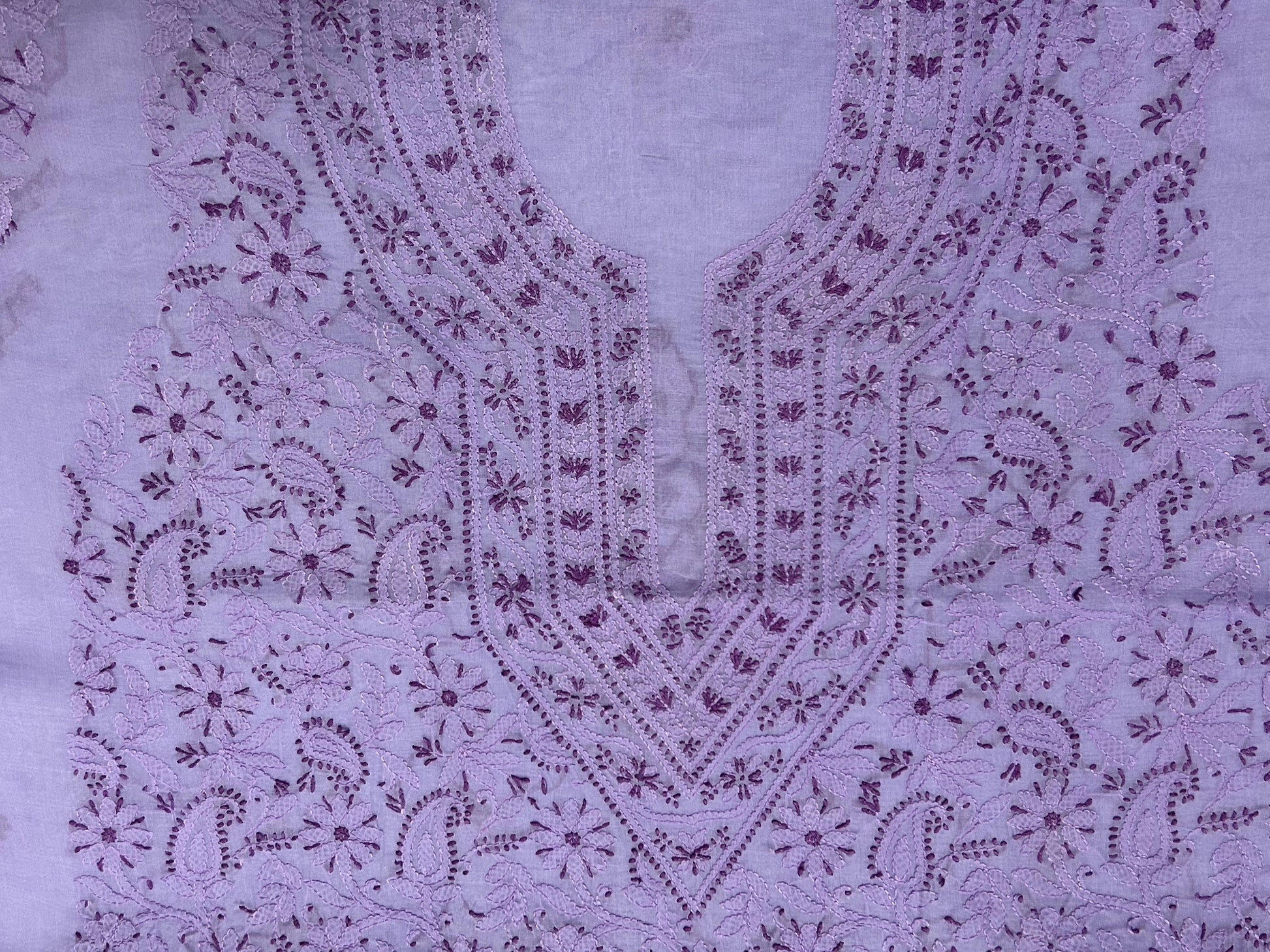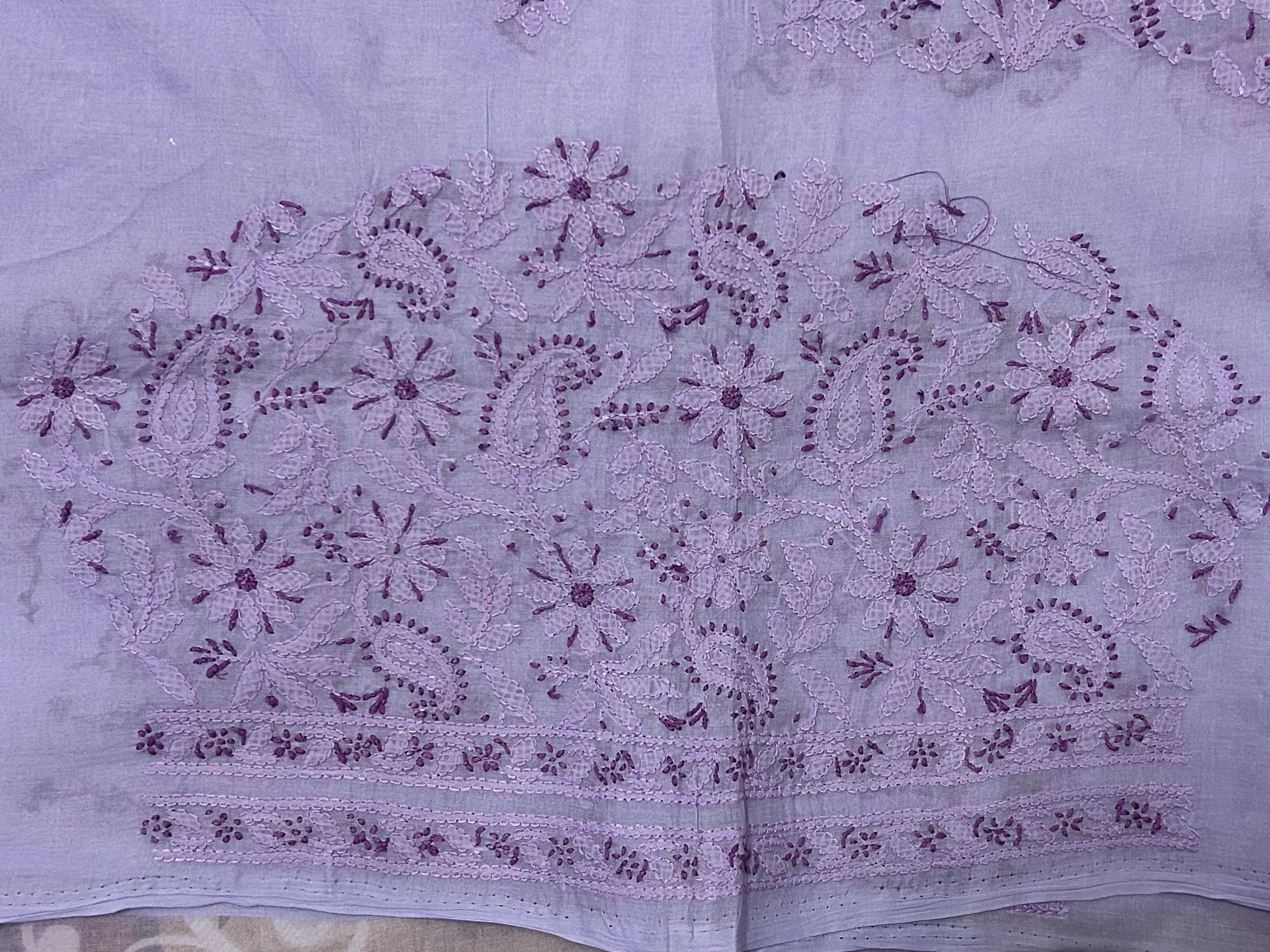 Lucknowi Chikankari Unstitched Purple Cotton Kurta Fabric-U10028
