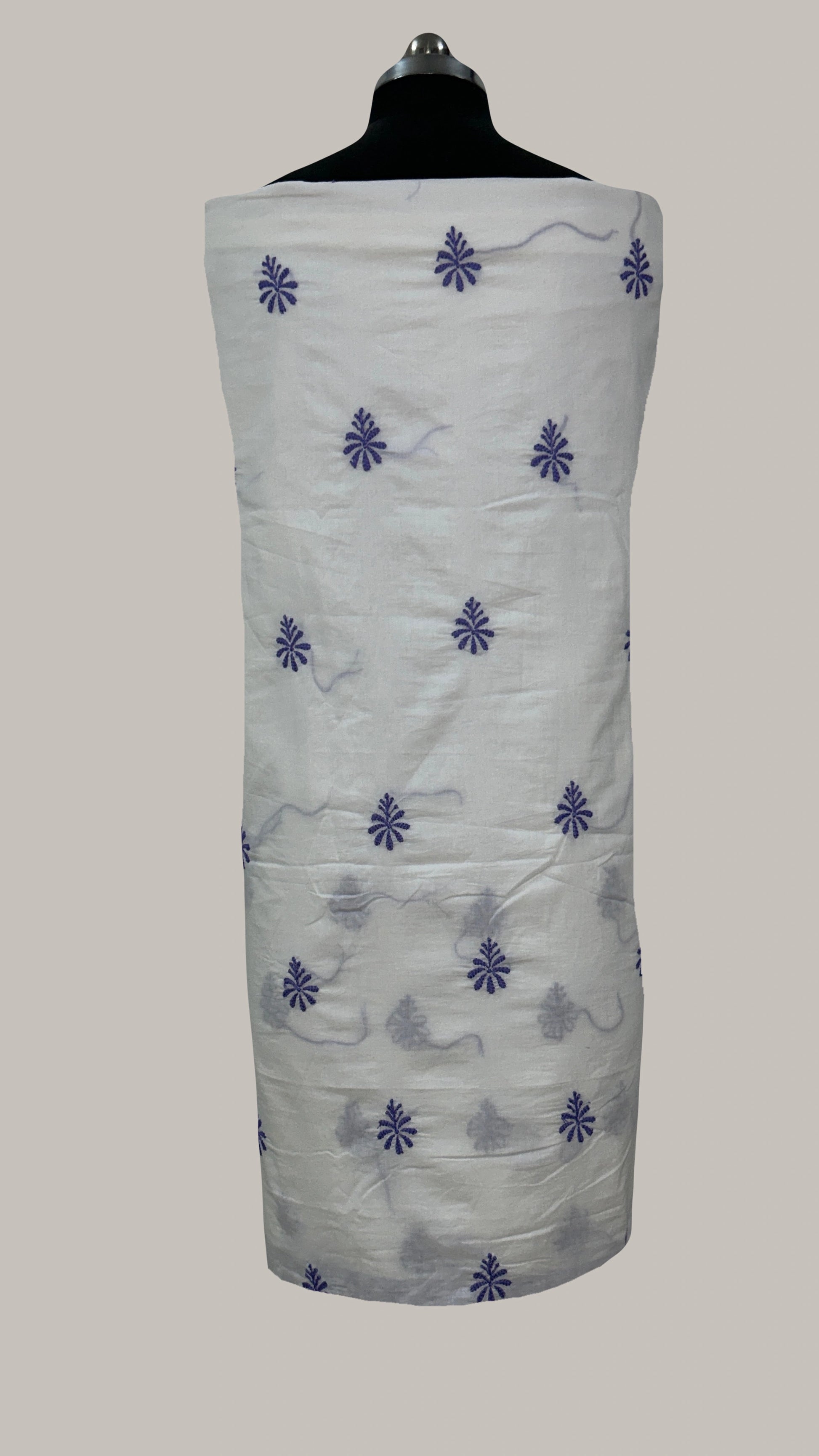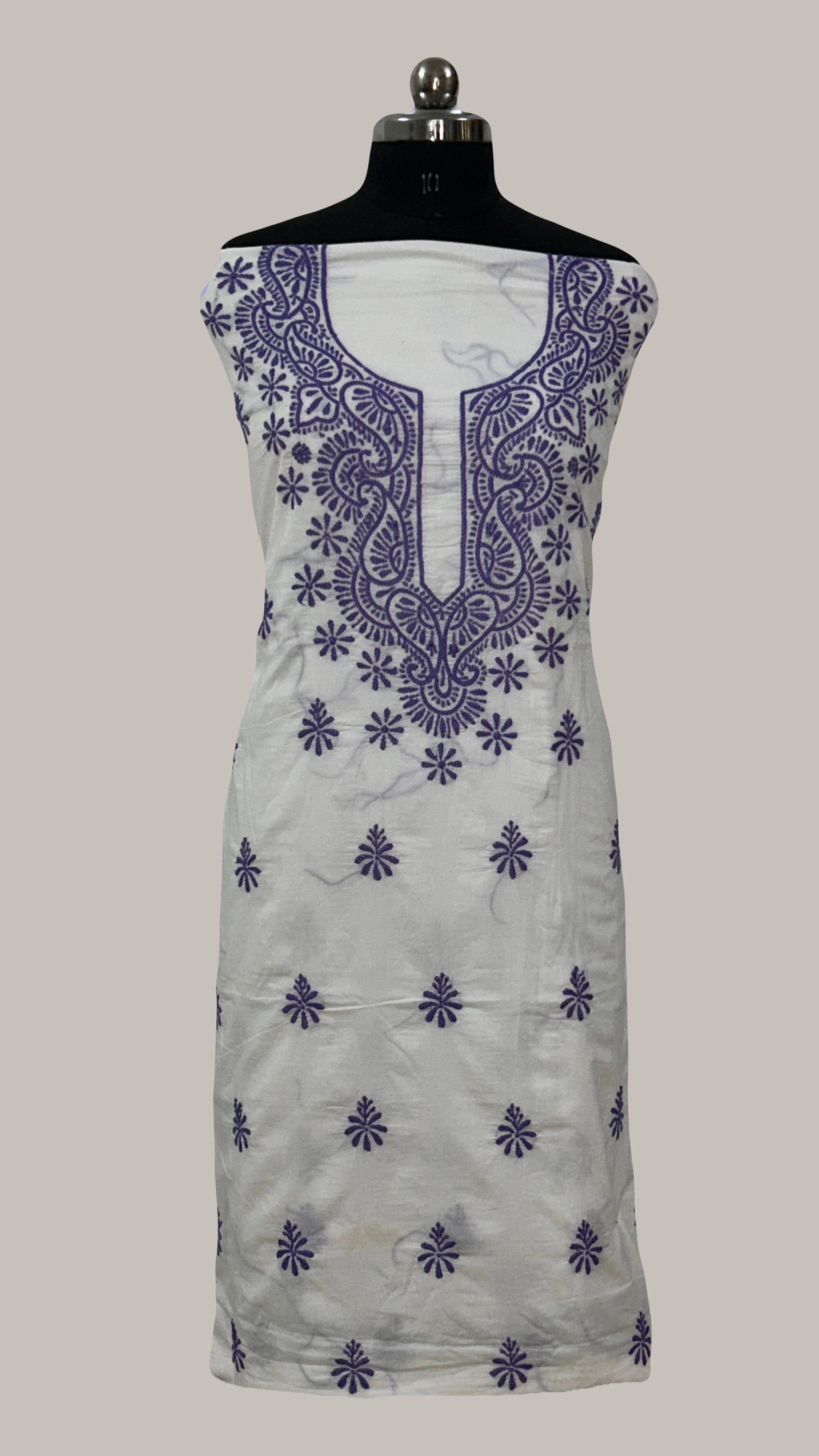 Lucknowi Chikankari Unstitched White Cotton Kurta-Bottom Fabric-U20012