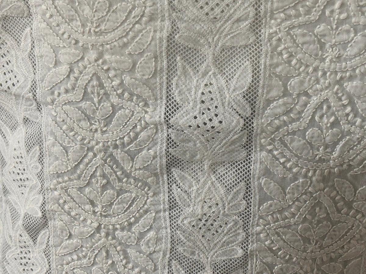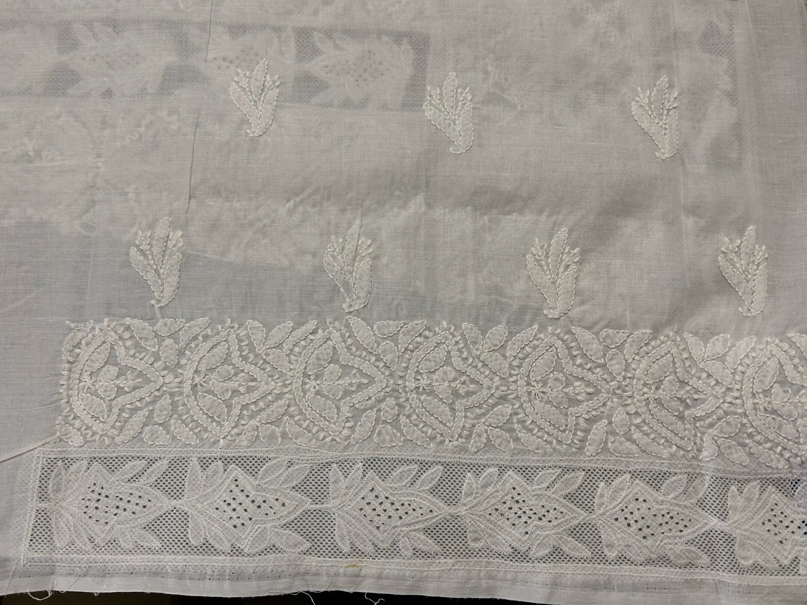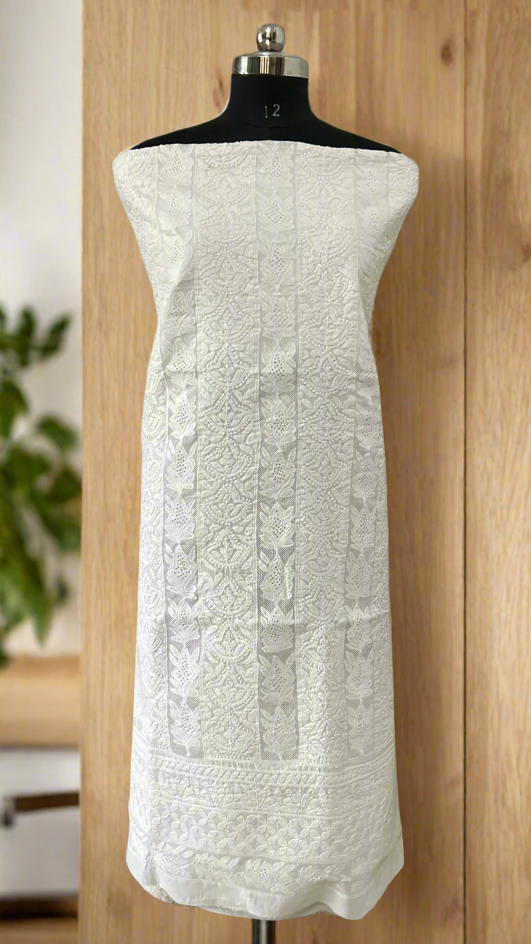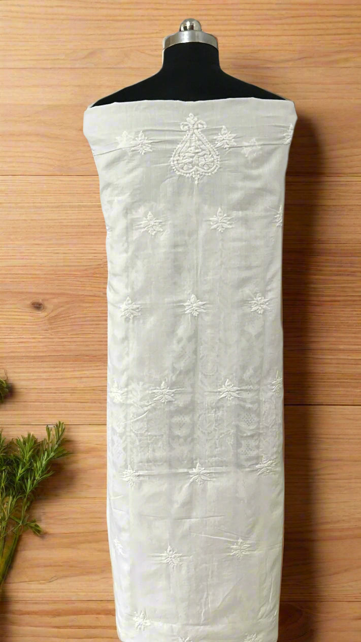 Lucknowi Chikankari Unstitched White Cotton Kurta Fabric-U10001