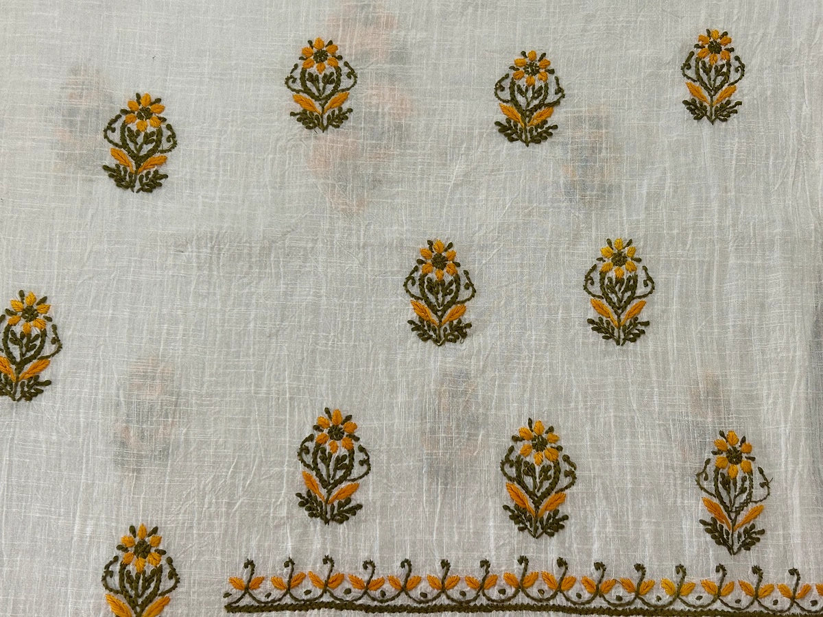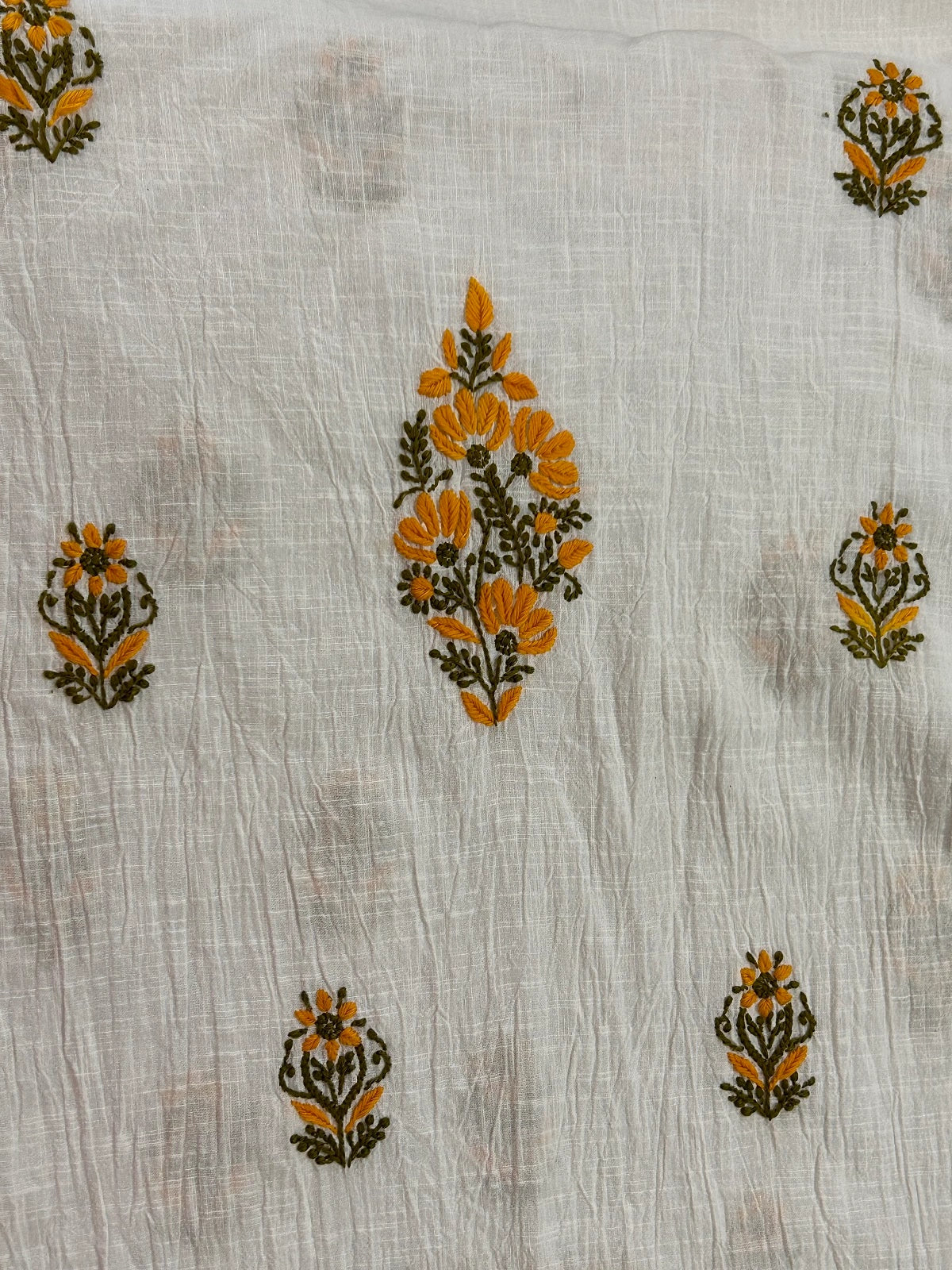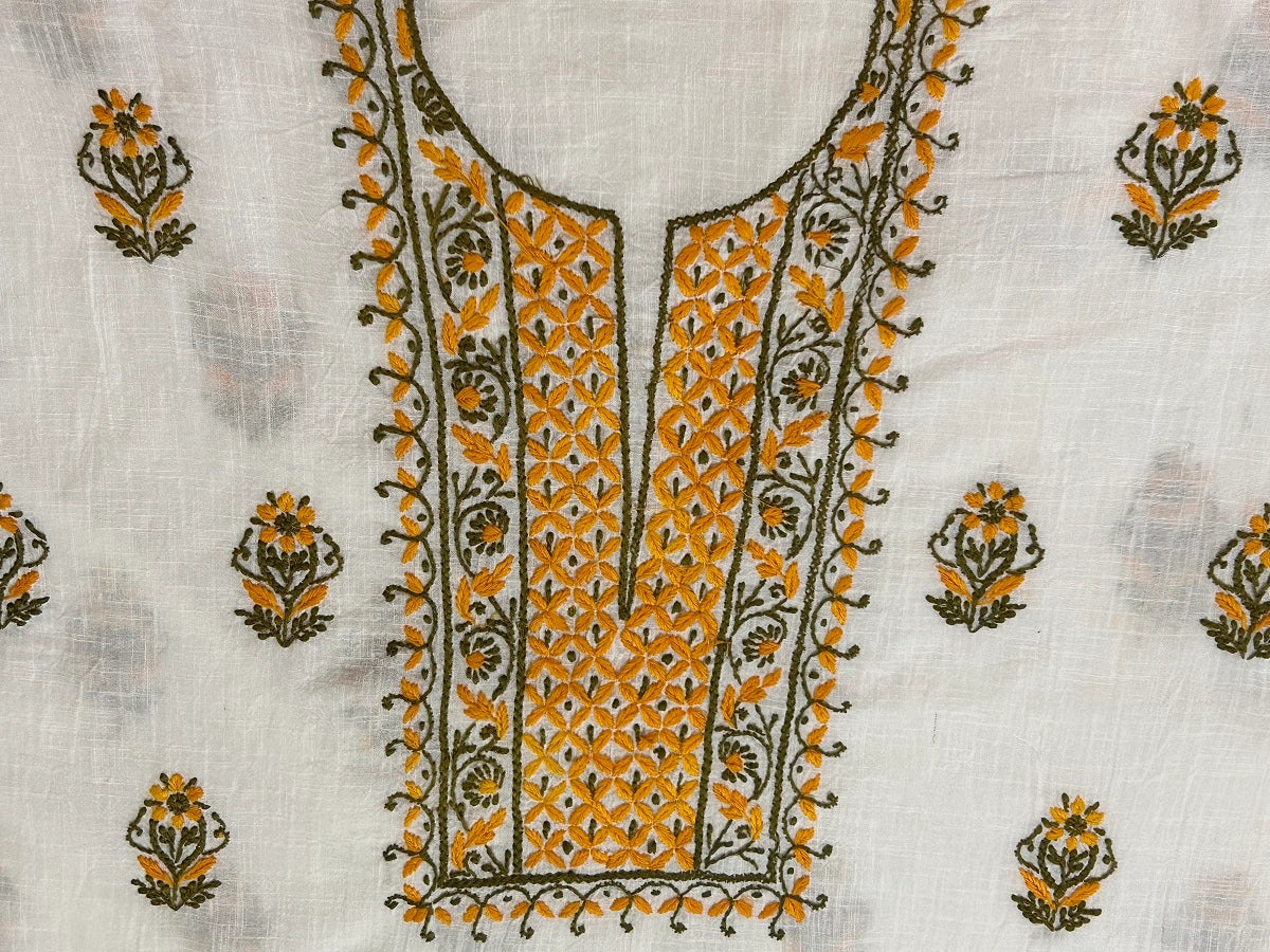 Lucknowi Chikankari Unstitched White Slub Cotton Kurta Fabric-U10005