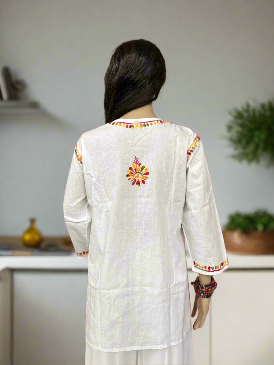 Lucknowi Chikankari White Cotton Short Kurti-T000027