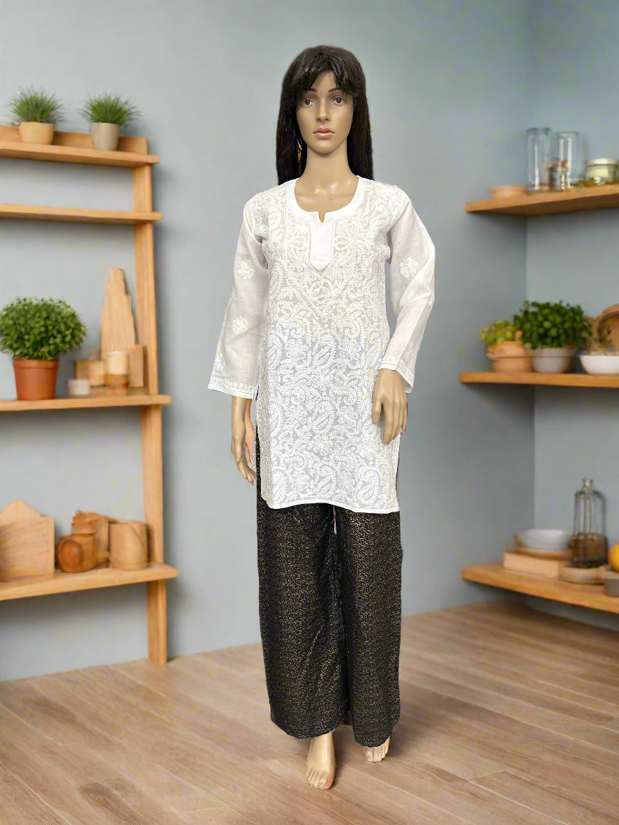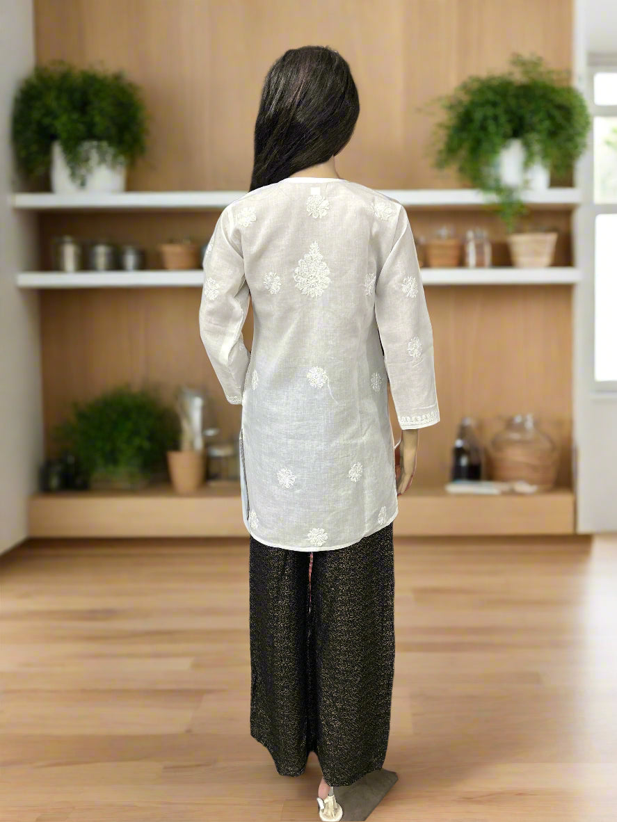 Lucknowi Chikankari White Cotton Short Kurti-T000057