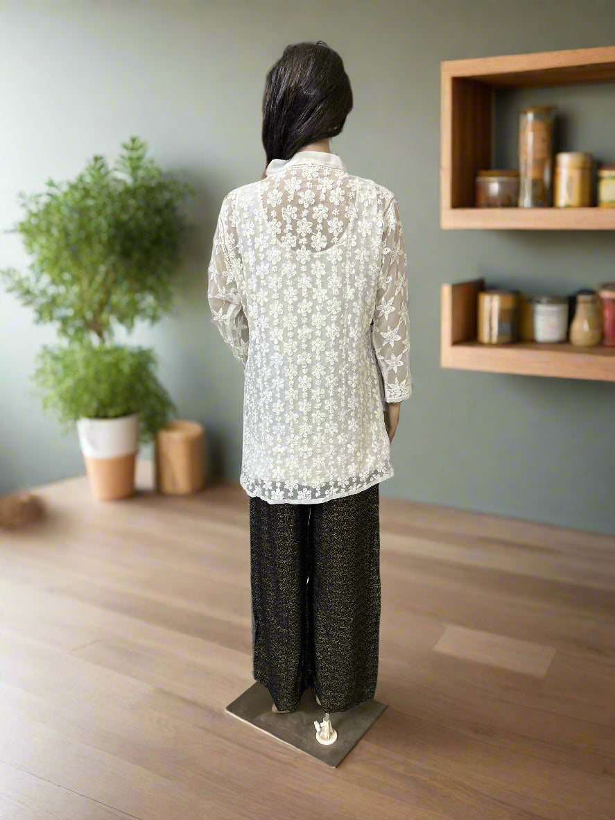 Lucknowi Chikankari White Georgette Short Kurti-T50013