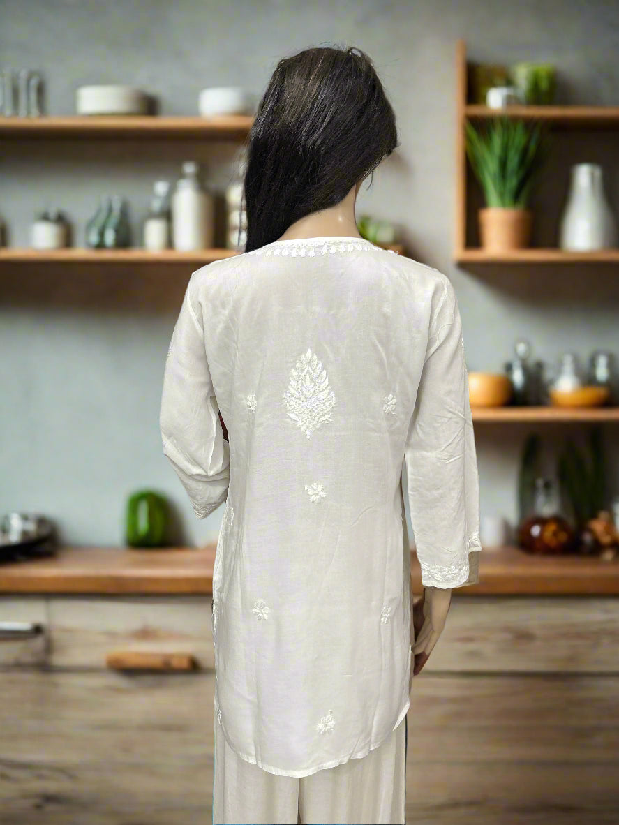 Lucknowi Chikankari White Modal Short Kurti-T50004