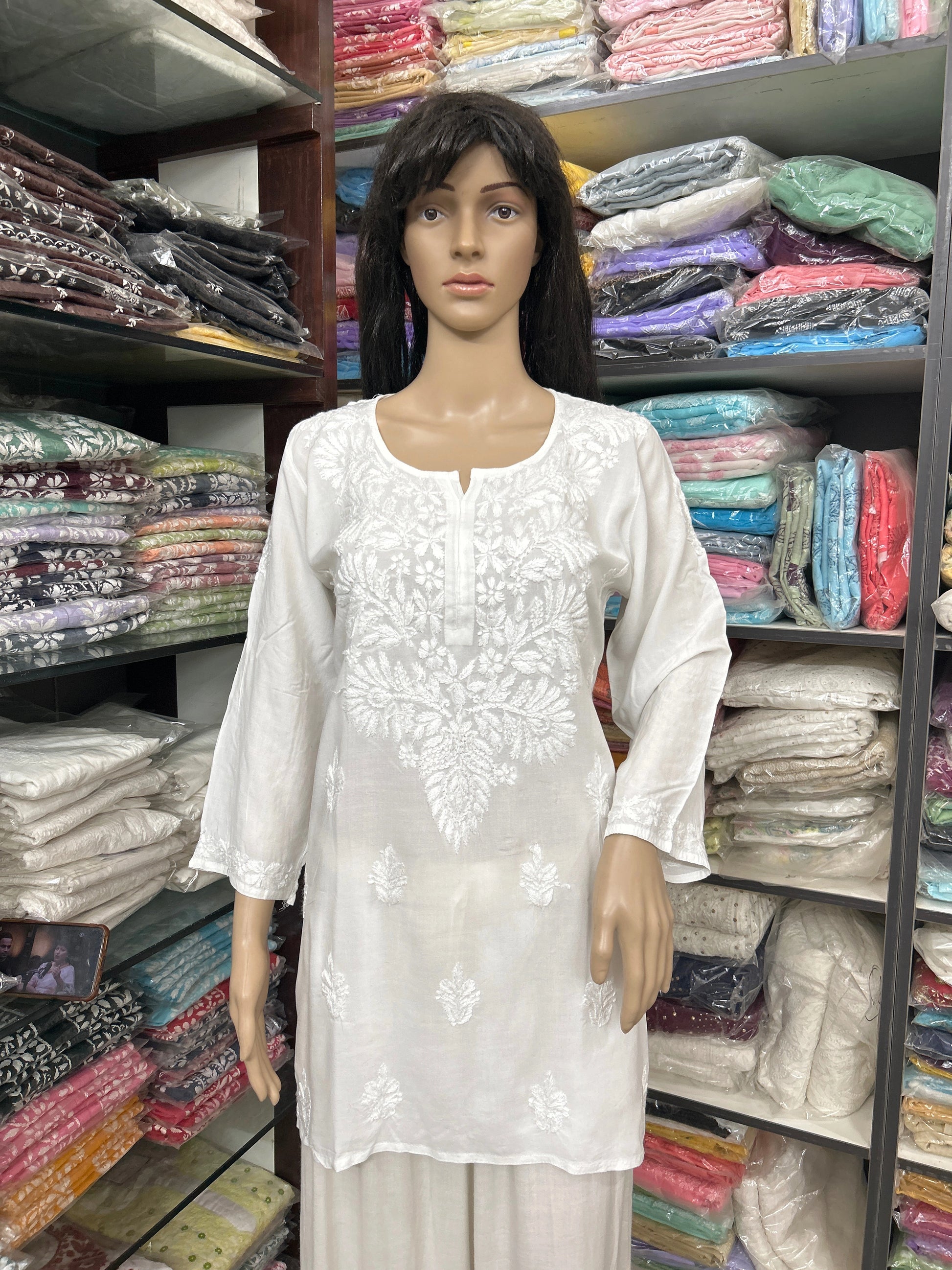 Lucknowi Chikankari White 'Ujaala' Modal Short Kurti-T50004