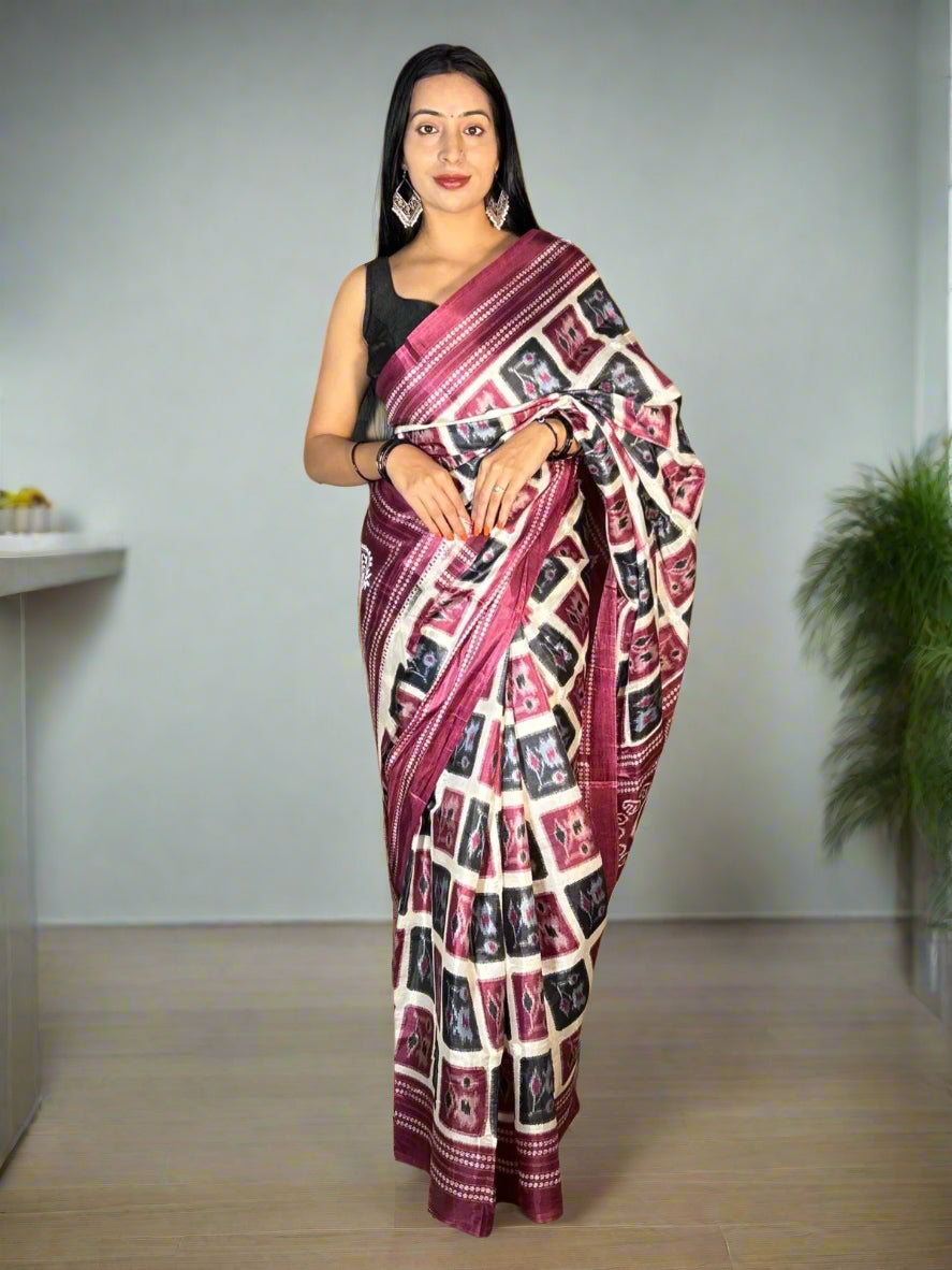 Lucknowi Chikankari Wine Printed Faux Silk Saree-PF100003