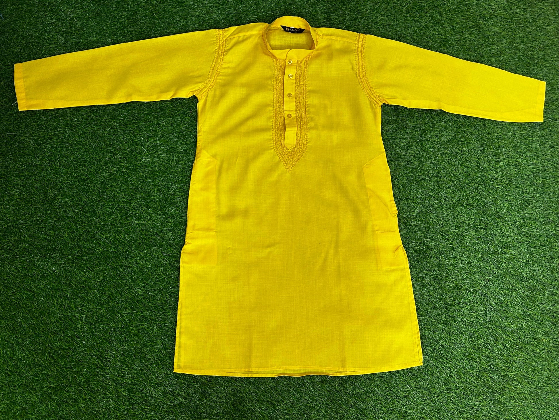 Lucknowi Chikankari Yellow 'Sunehri' Cotton Gents Kurta-GK00005
