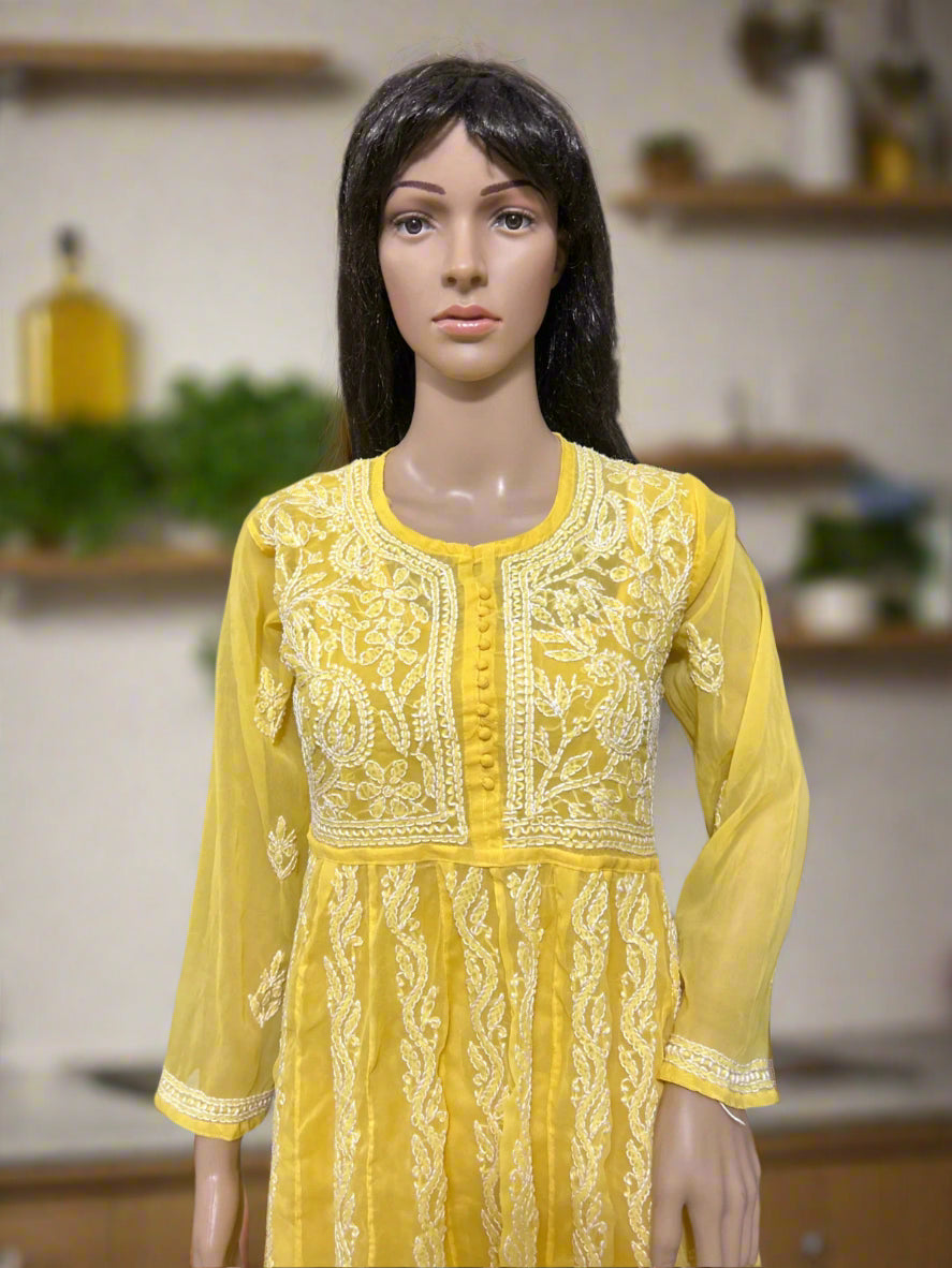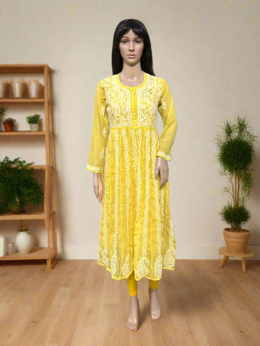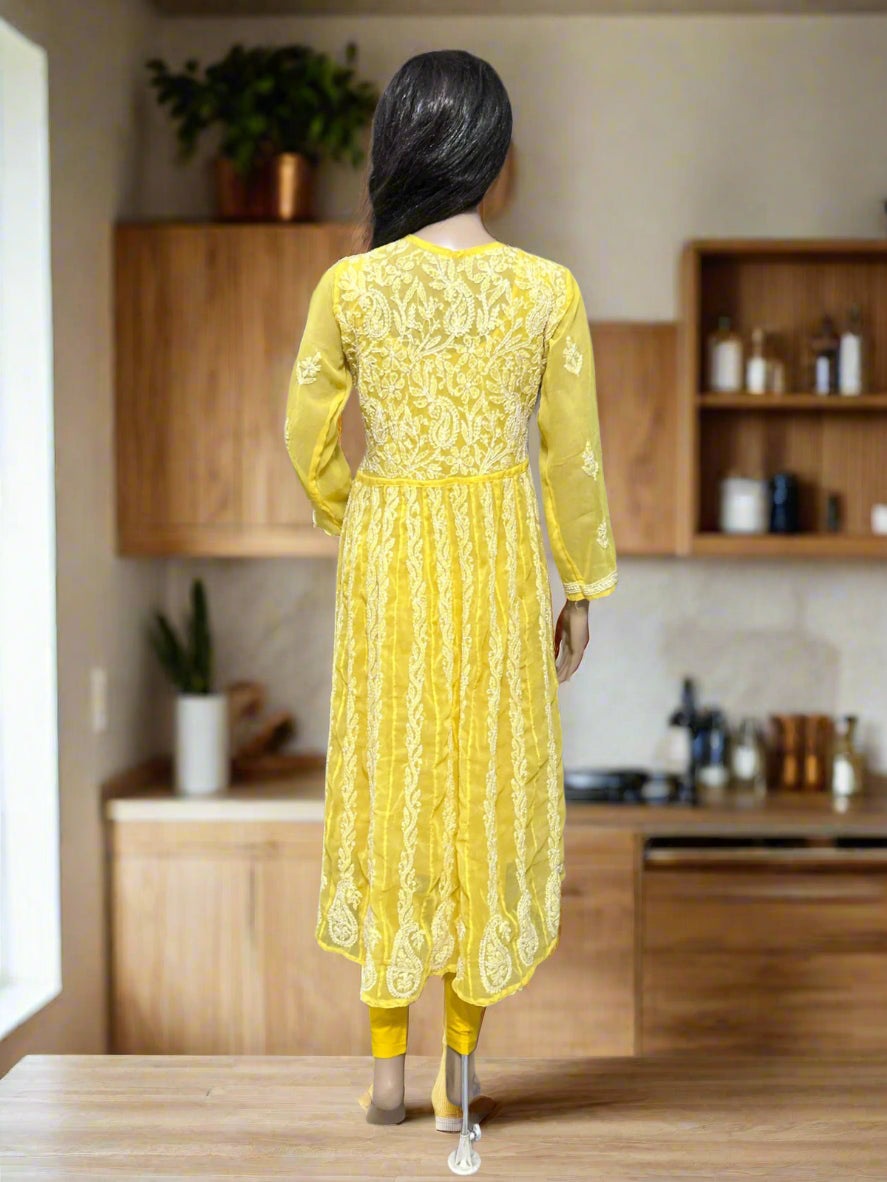 Lucknowi Chikankari Yellow Georgette Anarkali-K000042
