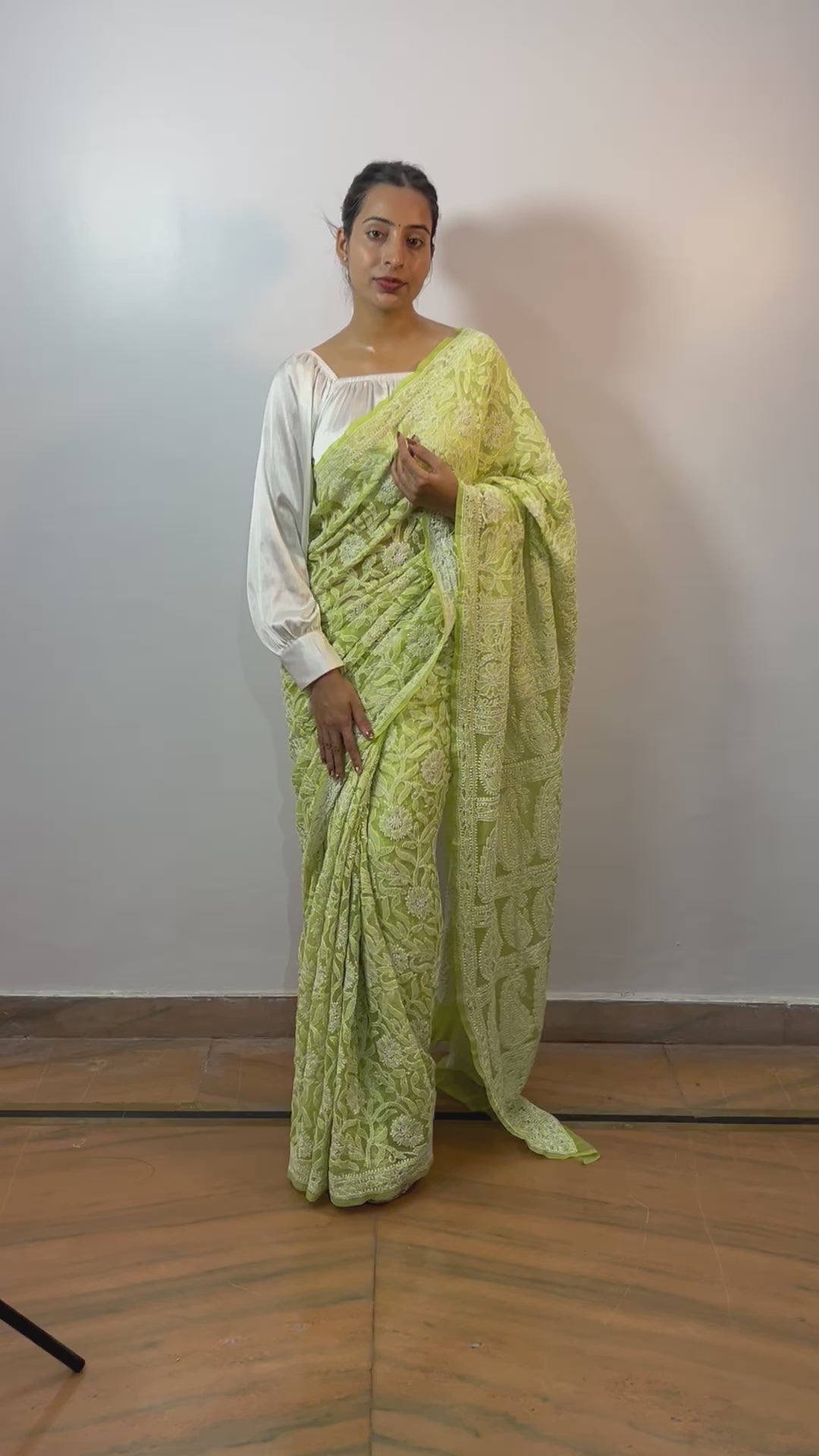 Lucknowi Chikankari Yellow Georgette Saree (With Blouse)-PF100010