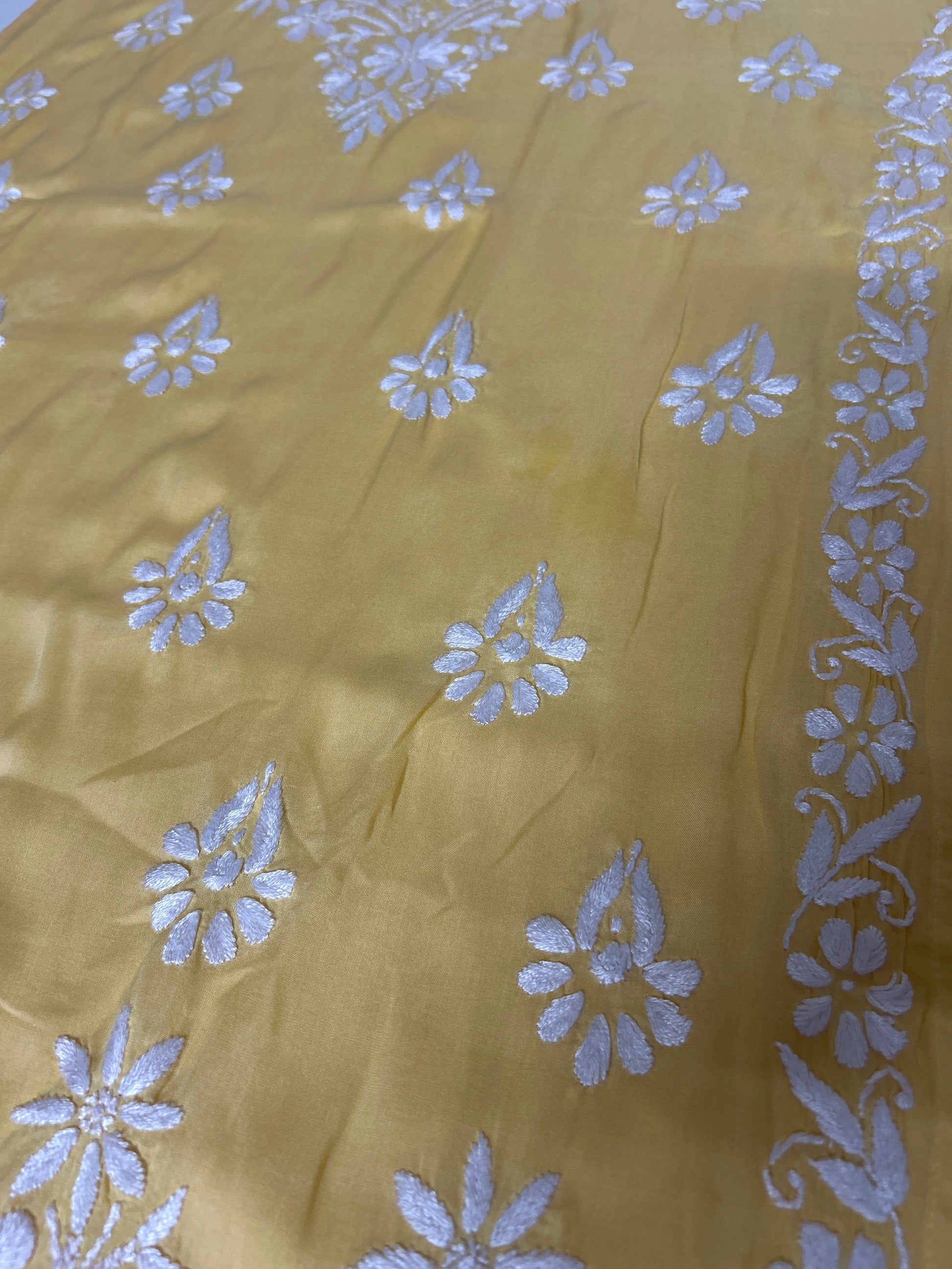 This yellow Lucknowi Chikankari Modal Kurti is a versatile and stylish addition to any wardrobe. Made from high-quality modal fabric, it offers a comfortable and airy fit, perfect for warm weather. Elevate your style with this classic and timeless piece, featuring delicate chikankari embroidery.