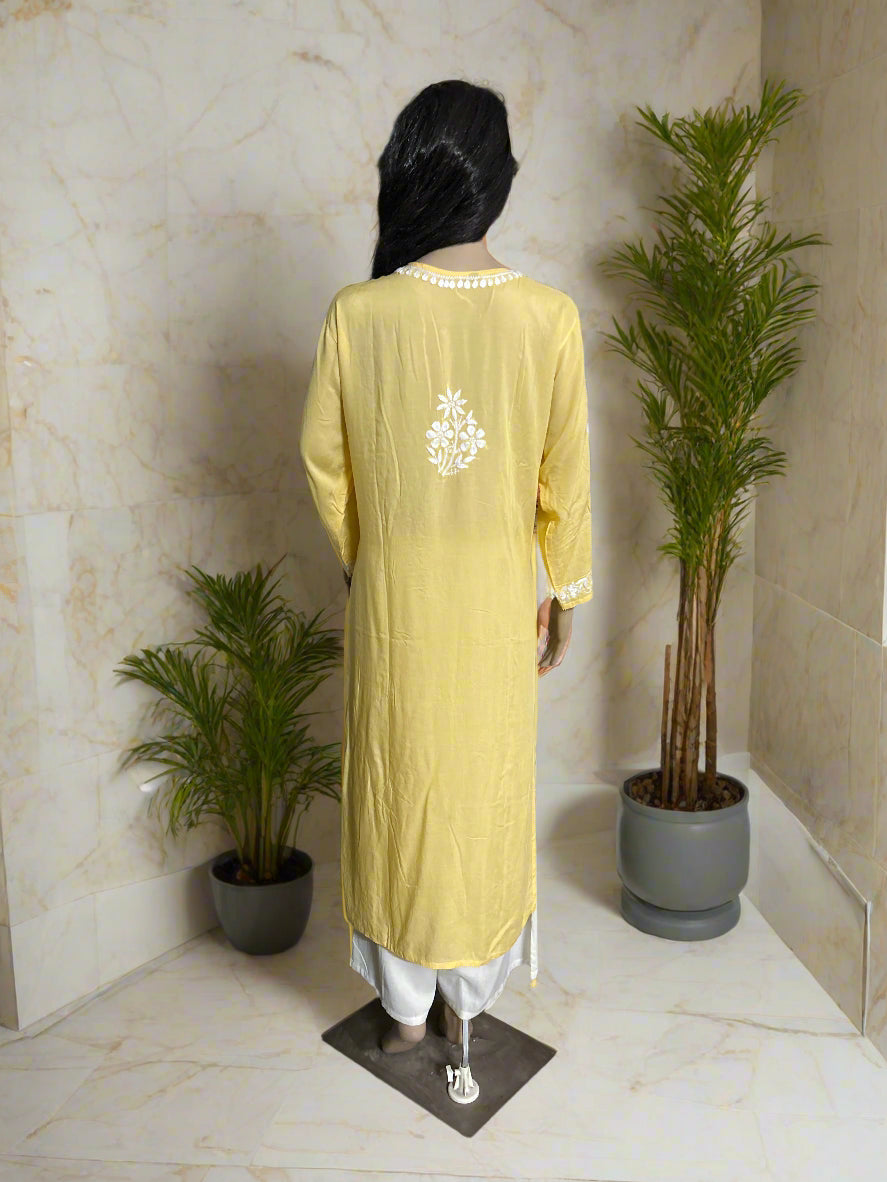 Lucknowi Chikankari Yellow Modal Kurti-K70008